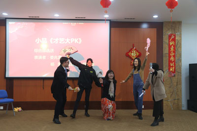 舞臺(tái)上,迎春聯(lián)歡會(huì)節(jié)目形式多樣、亮點(diǎn)紛呈,由各部門(mén)精心選送的小品、歌曲演唱、三句半和樂(lè)器演奏等形式各異的節(jié)目精彩上演。江濱人脫下工裝,盡顯才藝,通過(guò)各桌打分,綜合部選送的小品《才藝PK》獲得最佳節(jié)目獎(jiǎng)。最后公司總經(jīng)理徐冬上臺(tái)致辭,向全體干部員工及家屬致以新春祝福,向奮斗在一線(xiàn)崗位的員工表達(dá)敬意,迎新聯(lián)歡會(huì)圓滿(mǎn)落幕。